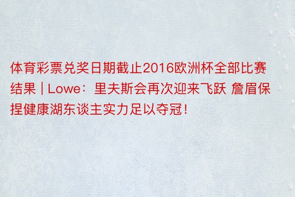 体育彩票兑奖日期截止2016欧洲杯全部比赛结果 | Lowe:里夫斯会再次迎来飞跃 詹眉保捏健康湖东谈主实力足以夺冠!
